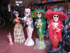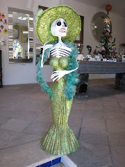 After watching these wonderful dancers for two hours, we did not feel the need to view something similar in the courtyard of the Parian later in the afternoon. Walked only a block and we met our friends Jim, Bob, and Richard....the JRB Jazz Band. Exchanged greetings and Ann and I, were on our way. To where? Wherever our feet might take us. Found a gallery thus far unexplored - "Galeria Rosita Canela y Jose Cortez" on Morelos, where I purchased a colorful tin lizard mirror.