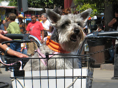 Between our bench and the stage was the road with hundreds of people mostly on bikes passing by. This added to the color and to our amusement. What a place for people watching. Laurinda would have fallen in love with the many beautiful dogs....many riding in bicycle baskets.