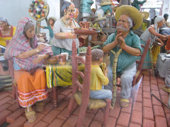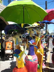 After drying off, and giving the gardens their soaking, we wandered about town for a couple hours. Seems as though each time we walk down Independencia, we discover galleries and shops that we have not visited before. How is this possible? Today's discovery was Galeria Carlos Albert at No 159. with its display of whimsical animals mostly made of paper mache. The woman working there stuck up a friendly conversation with us. She said that customers can walk into the shop with frowns on their faces but, cannot help walking out with a grin. This is so true. The art delights one's spirit. Two more times this day, we met up with our new friend...at Waldos (the ten peso s tore) and at the evening concert. Each day our group of acquaintances in town expands.