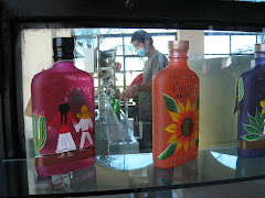 We drove further through the town of Tequila. All along the way there were small distilleries...and fields of agave...and of course many roadside stands selling tequila. We drove to a lovely estate and distillery "La Corfradia" where a local guide "Julia" showed us her company's process. This was the same as "Tres Mujeres" but, on a larger scale. On the premises they also had a pottery company from Tonala where decorative bottles were made for bottling tequila. It was interesting to tour this fabrica to see the pottery making process.